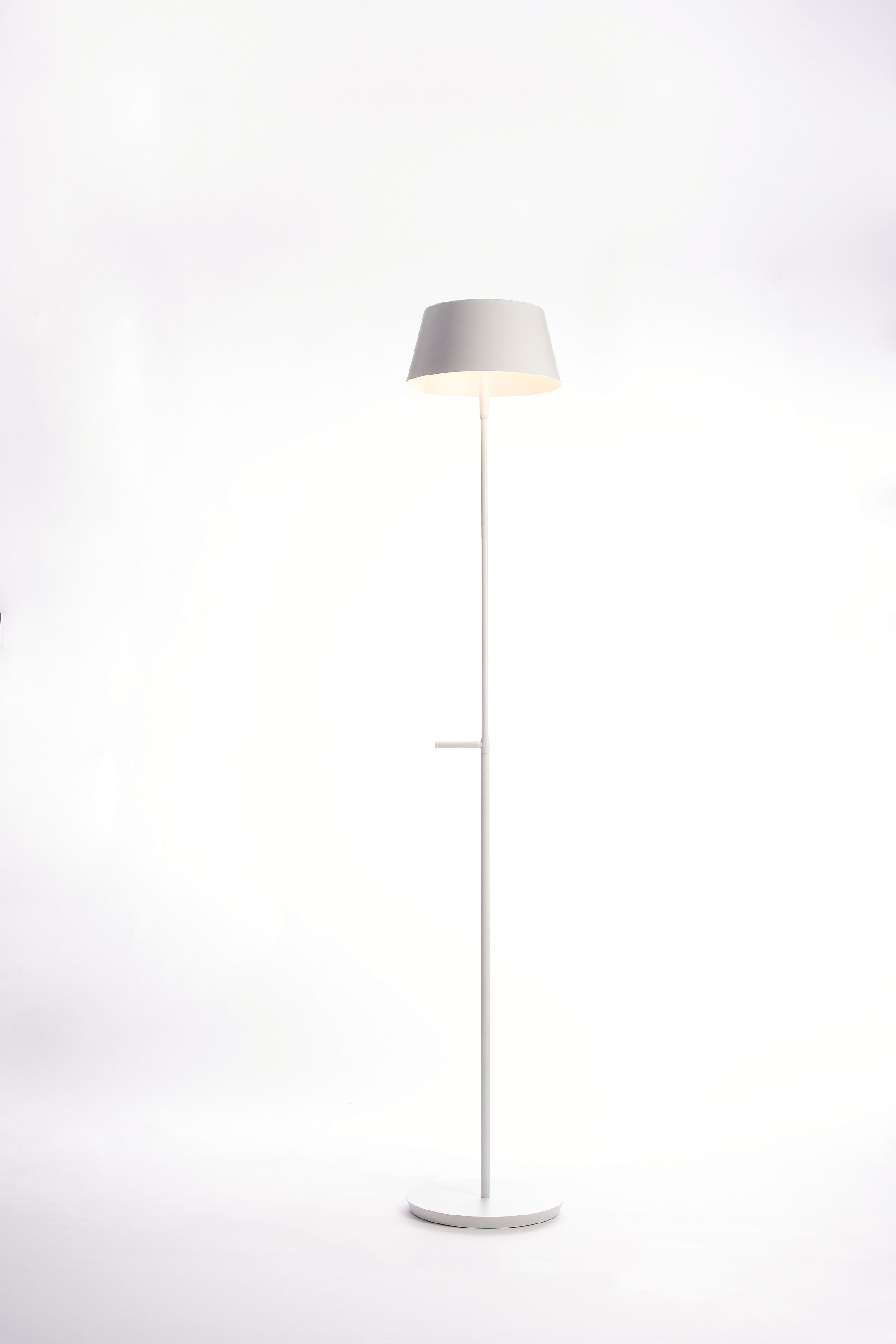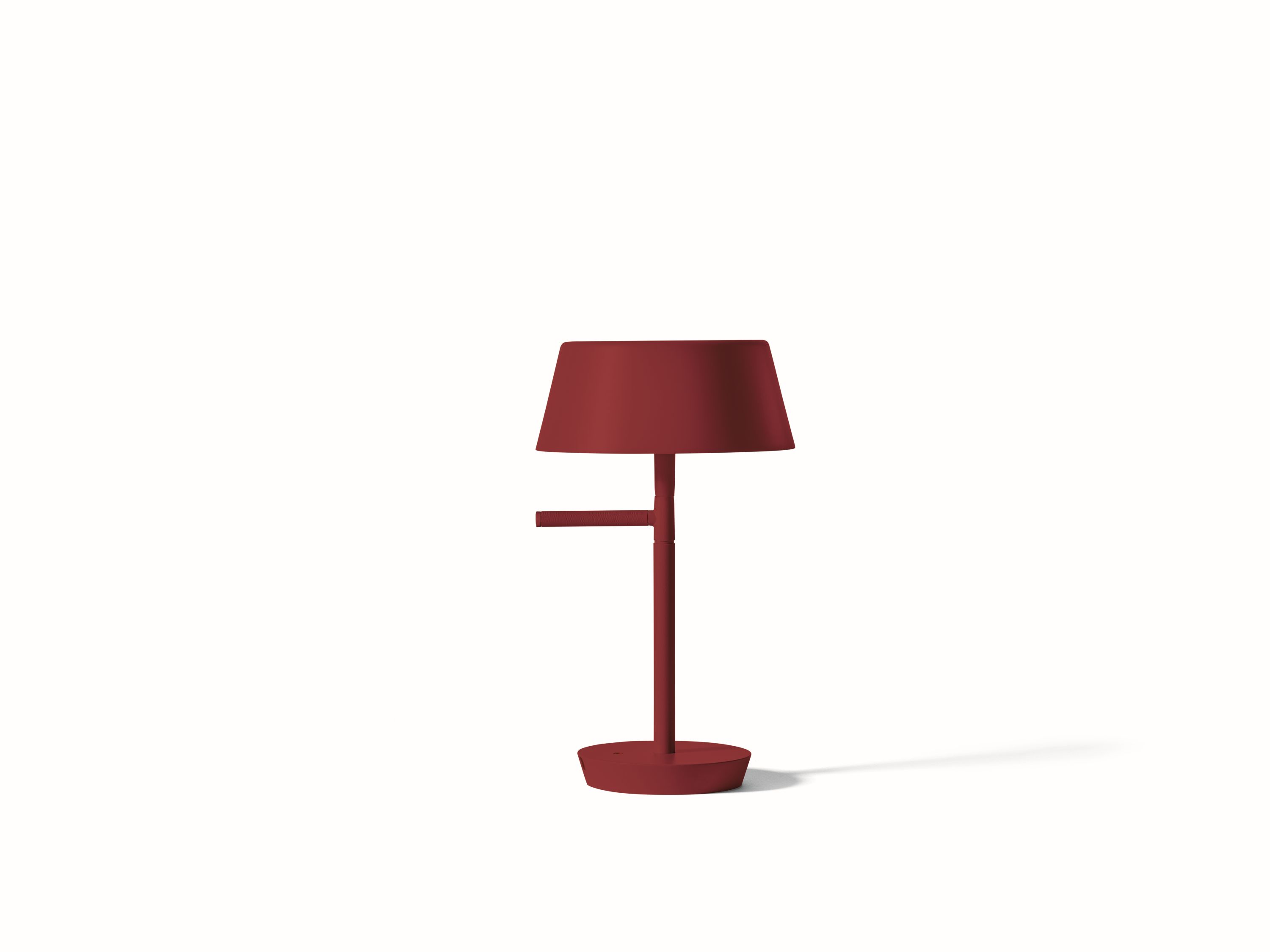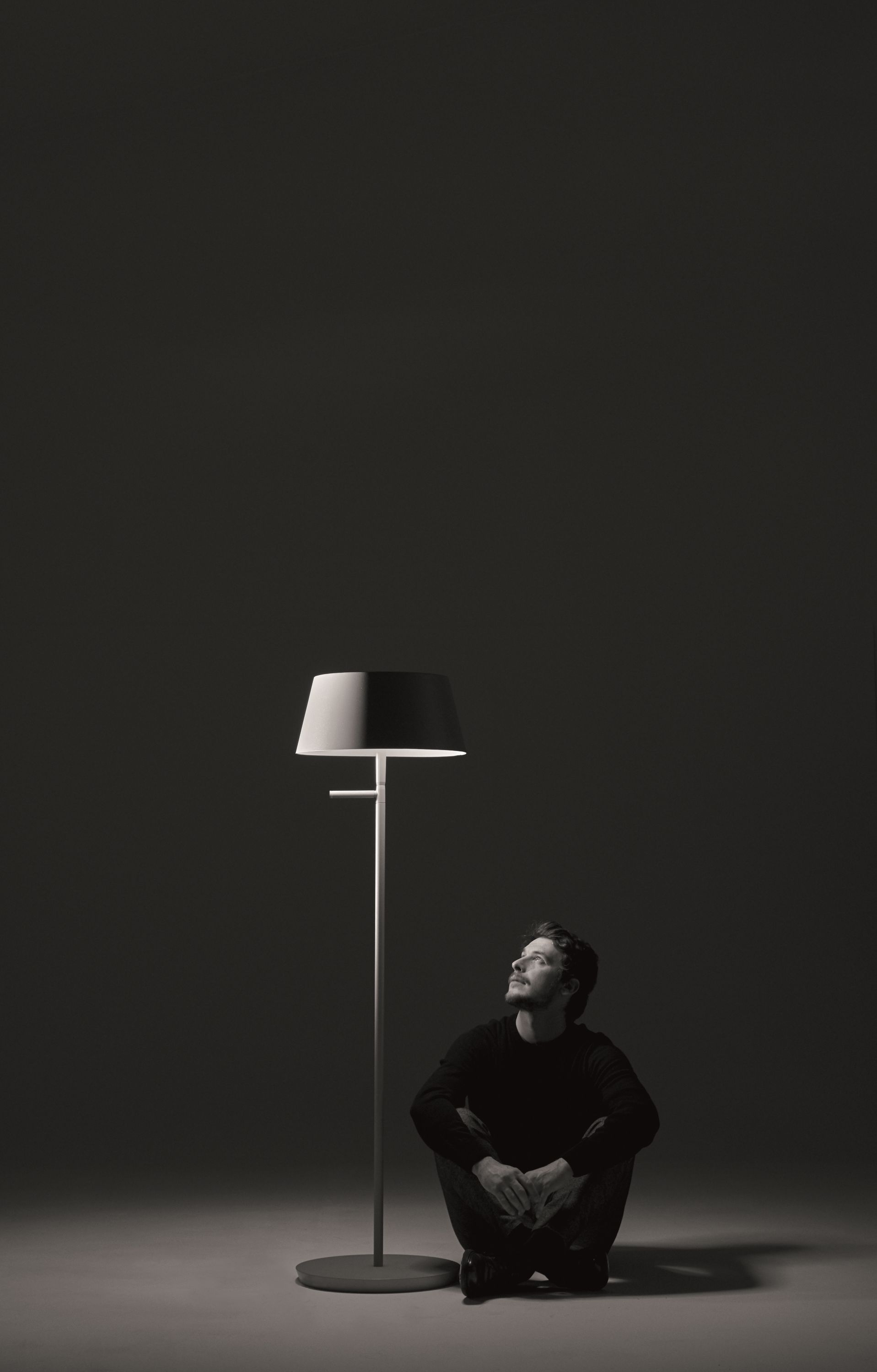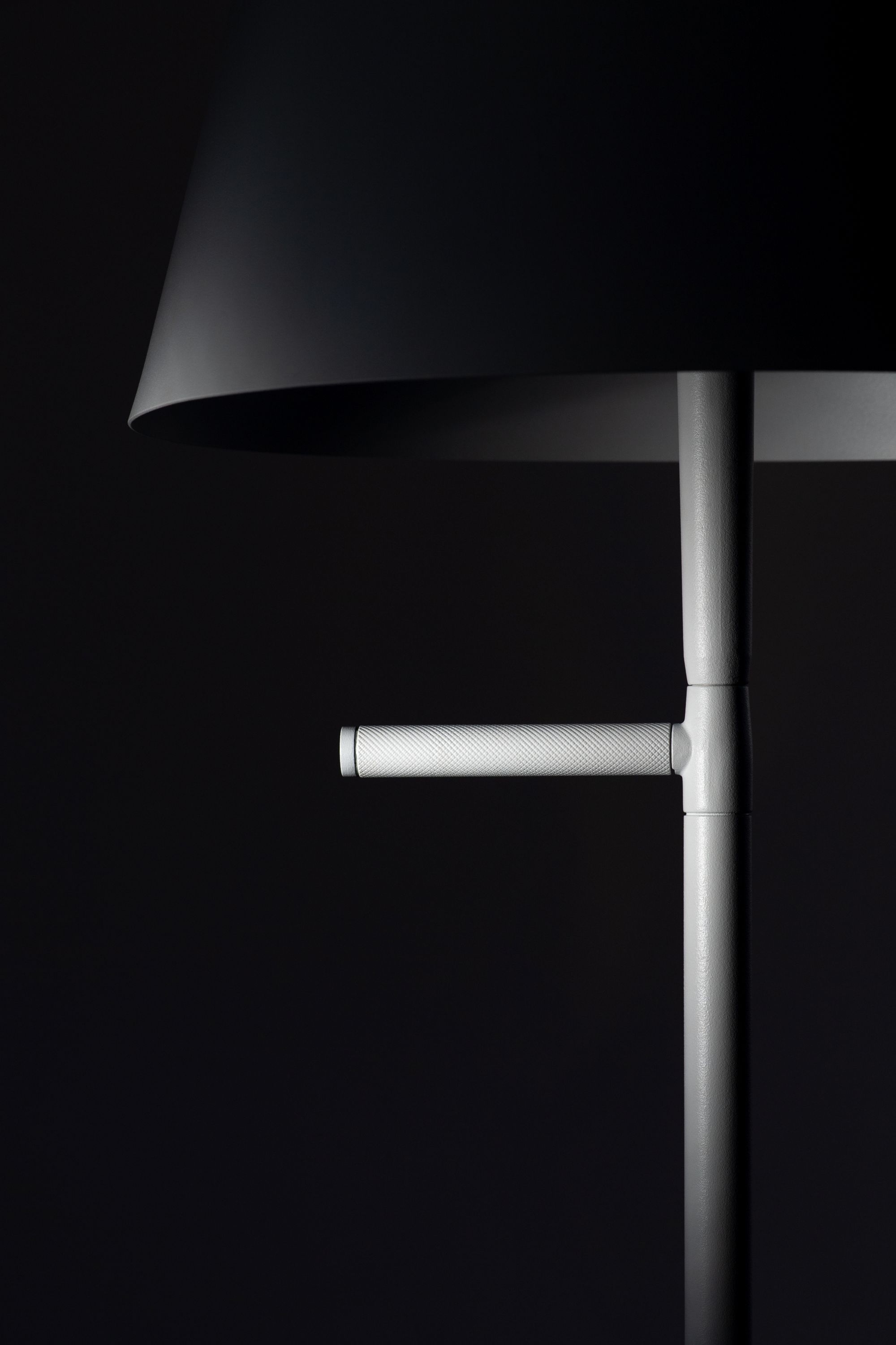 The design is minimalistic but recognizable through the details such as the handle, an ergonomic grip that becomes itself graphical mark of the designand moreover it keeps the secret of the mechanism that offers the possibility to change the height of the lamp.